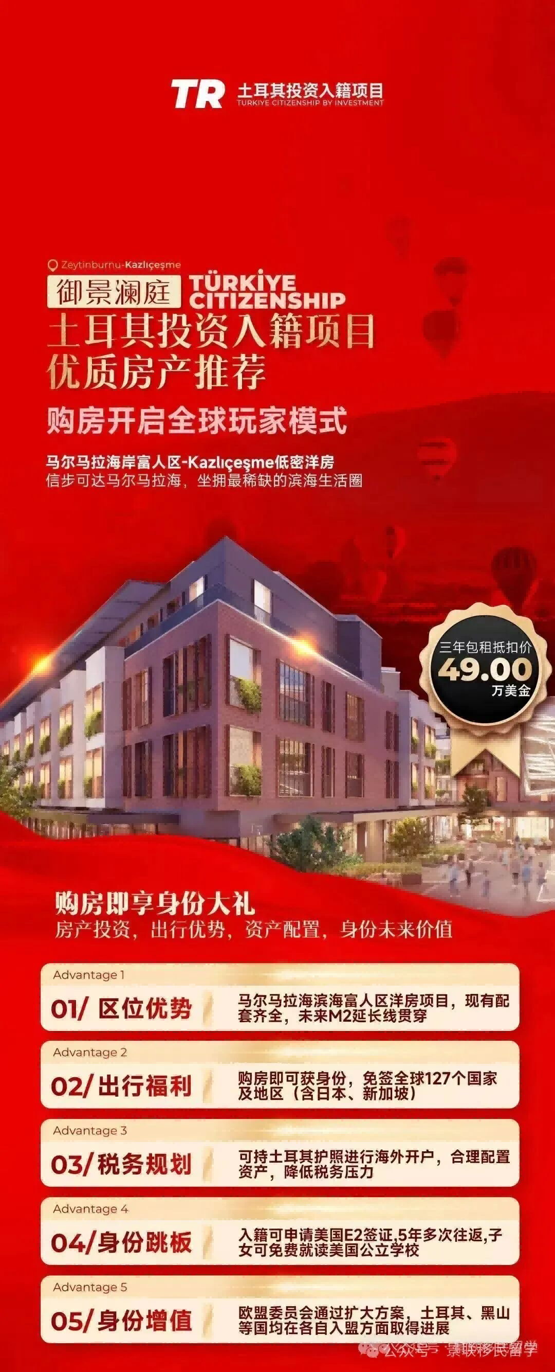 土耳其允许申请人在当地购买价值40万美元房产,持有三年,即可全家申请土耳其护照公民身份!
