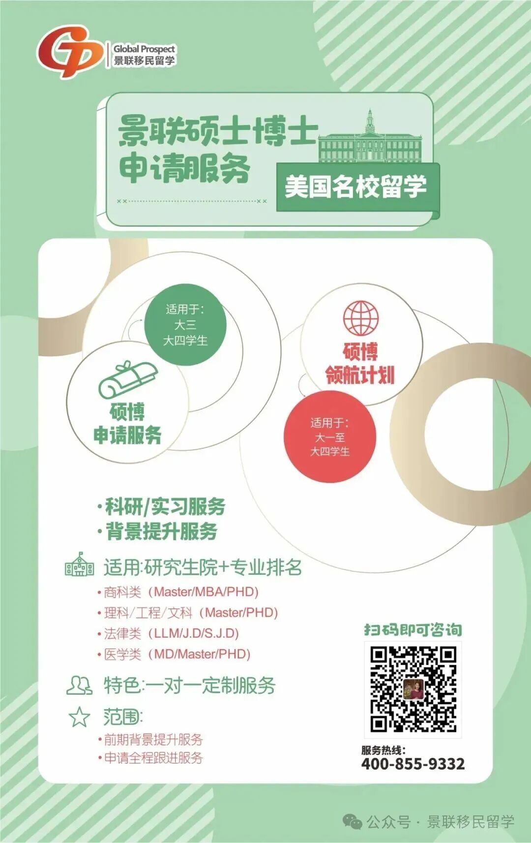 面对日益激烈的名校申请竞争,景联留学依托近二十年美国顶级大学申请经验,正式推出硕士博士【领航计划】。