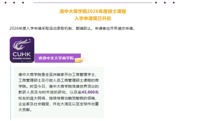 香港中文大学商学院:2026年度入学申请火热进行中!12大前沿专业!
