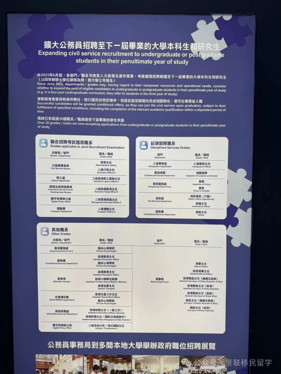 第35届教育及职业博览本年度特设「教育」及「职业」专区︰「教育专区」分成4大展区—「本地教育」、「非本地升学」、「终身学习」以及「青年广场」,四个展区将会以多角度、多方位为到场人士提供升学及进修的资讯;「职业专区」则分设「职业」及「招聘广场」两个展区,专门提供求职资讯,更设「一对一CV咨询」,让求职人士即场获得宝贵意见。部分雇主亦设即场面试机会,到场人士可以捉紧机会,向心仪机构表现自己。 景联移民留学顾问今年亦再度参访教育及职业博览,现场了解香港及海外升学出路疑问,并分享最新课程资料、升学指引及规划建议,协助大家掌握未来方向。